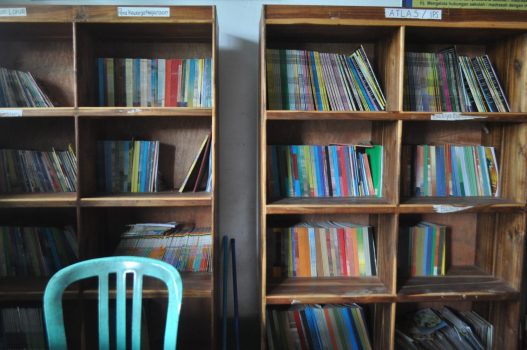 Ruangan ini tidak terlalu luas, tapi jumlah buku didalamnya bisa dikatakan lengkap. Buku cerita, pengetahuan dan beberapa jenis lainnya tertata rapi di lemari-lemari yang berdiri. Kurangnya, hanya tidak ada yang mengunjungi.