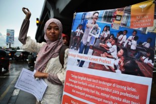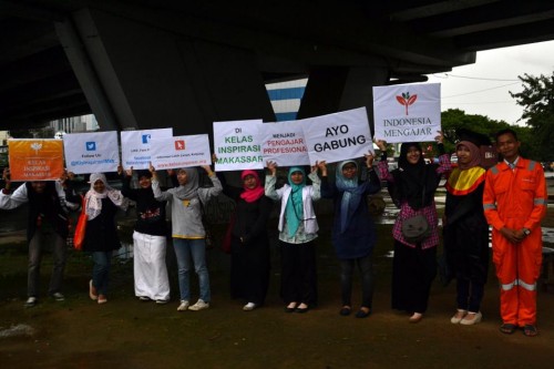 Salah satu kegiatan yang menjadi job description tim sosialisasi Kelas Inspirasi Makassar adalah melakukan sosialisasi pada beberapa titik yang memiliki konsentrasi massa yang cukup banyak. Hari ini, Rabu 27 Februari 2013 kami melakukan street campaign di lampu merah yang berada di bawah fly over. Sore hari kepadatan kendaraan disana berada pada puncaknya. Jalanan ini menjadi akses penghubung untuk wilayah bisnis dan yang lainnya. Di waktu itu pula mereka (kaum pekerja) seakan sepakat untuk kembali ke rumah bersama-sama. Moment inilah yang coba kami manfaatkan.